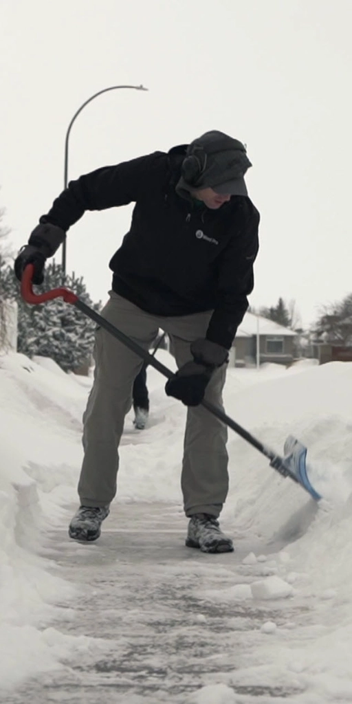 We clear your driveway, front entry, and city sidewalk—usually within 24 hours after snowfall ends—so you can step out safely.